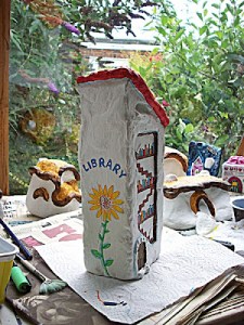 By way of a celebration rather than use one of my own images; I will feature some sweet pictures from a fellow Blogger Gennepher’s Art who has amongst others been very supportive … it transcends the formality of libraries that I am familiar with … and makes me smile!!