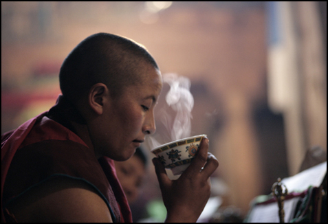 Legends suggest that it was later when a camelia leaf was accidently dropped into boiling water and made into a drink. Thus becoming the normal way to take tea in China and central Asia. However, in Tibet and high altitudes it is continued to be served in a semi-food form made with yak butter and sugar or balls of tea leaves much like it was in the early tribes as mentioned before.