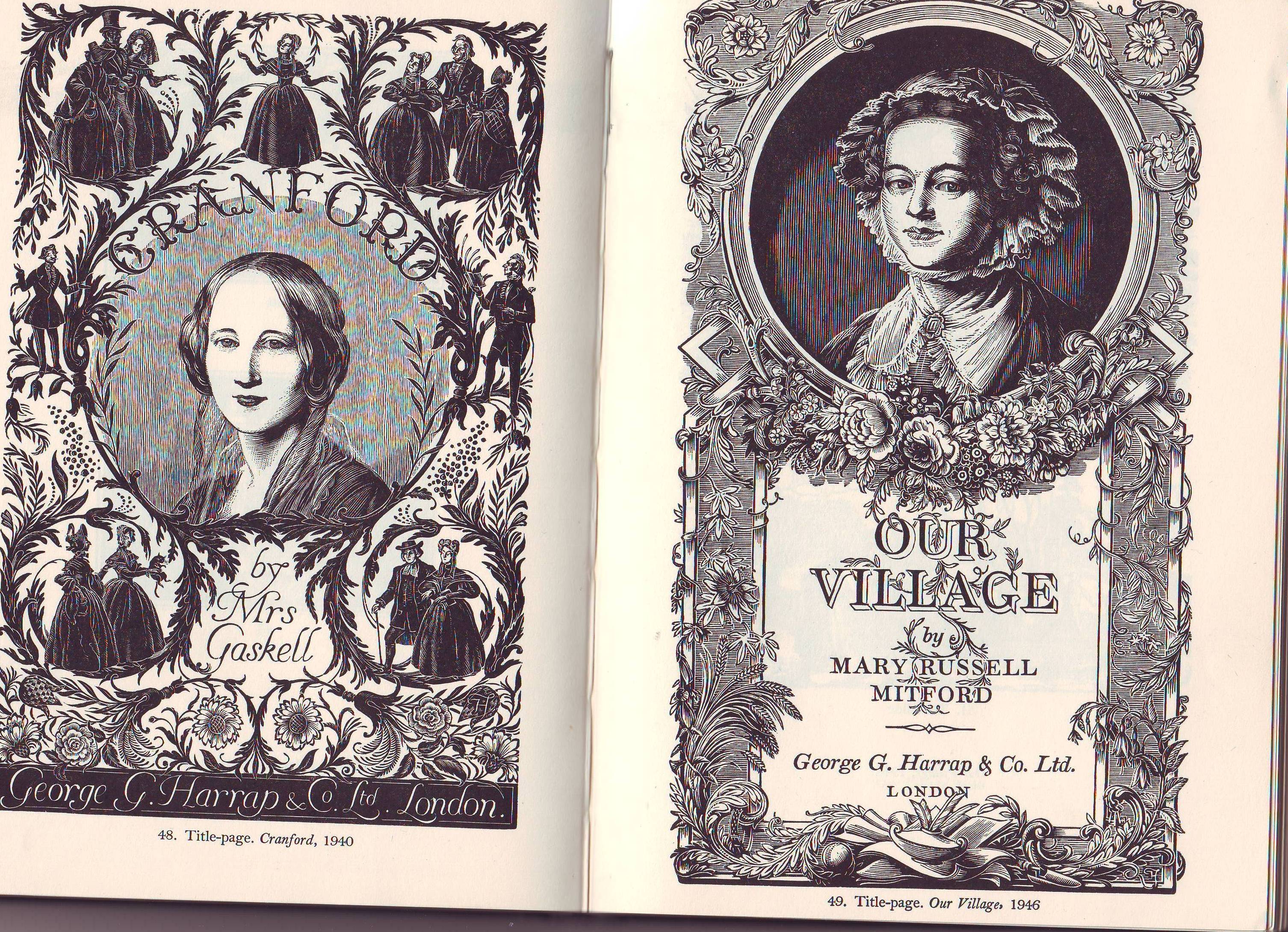 Our Village by Mary Russell Mitford is about Mary’s life in Reading and nearby Three Mile Cross so is very interesting to me – a local lady. Also it has been published several times and graphically produced quiet differently. One copy we have has been published here at the University and the wood cuts are very lovely; I will show you next week.