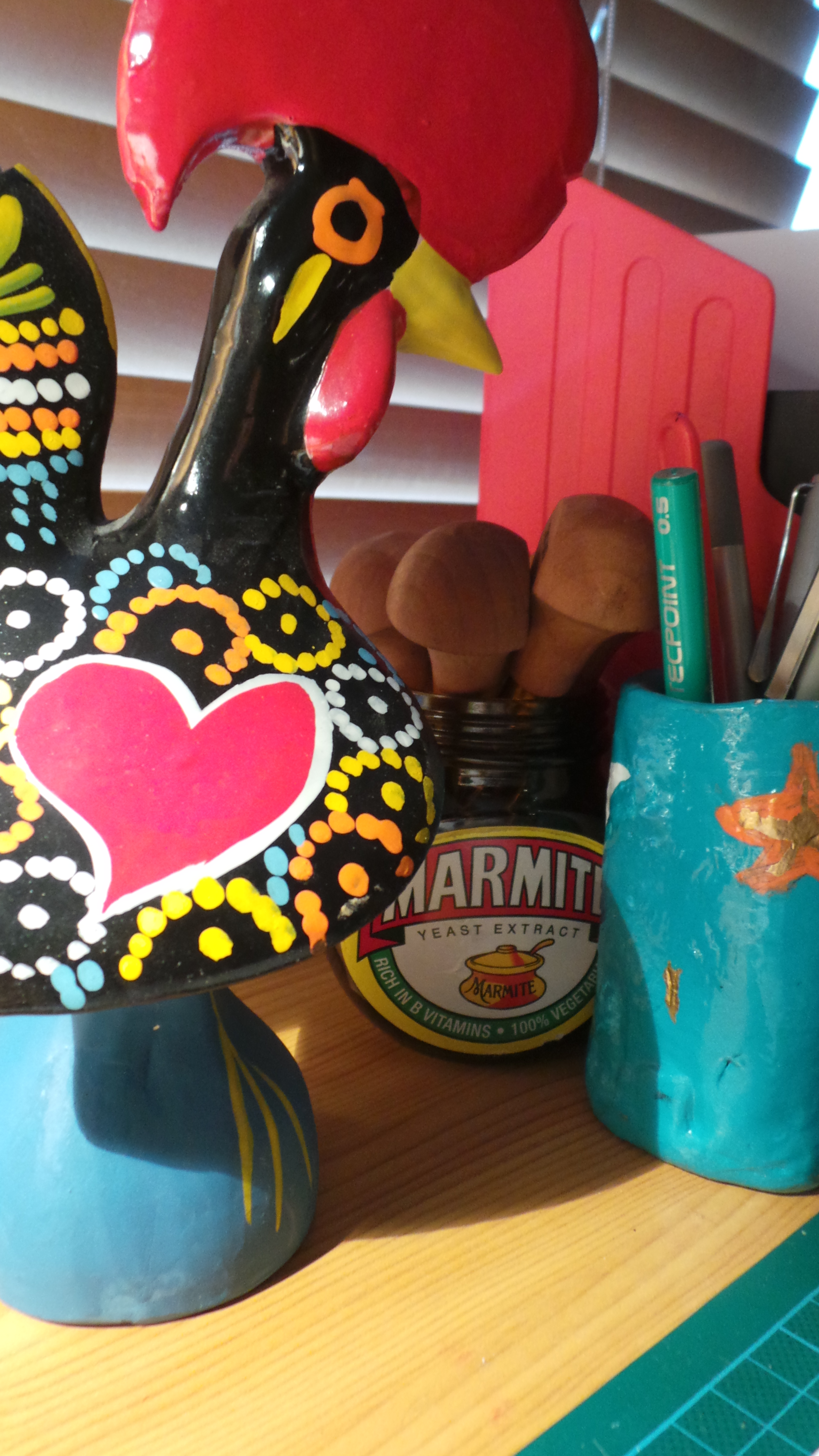 The cockrel does look like he belongs with the marmite. Such an interesting picture.