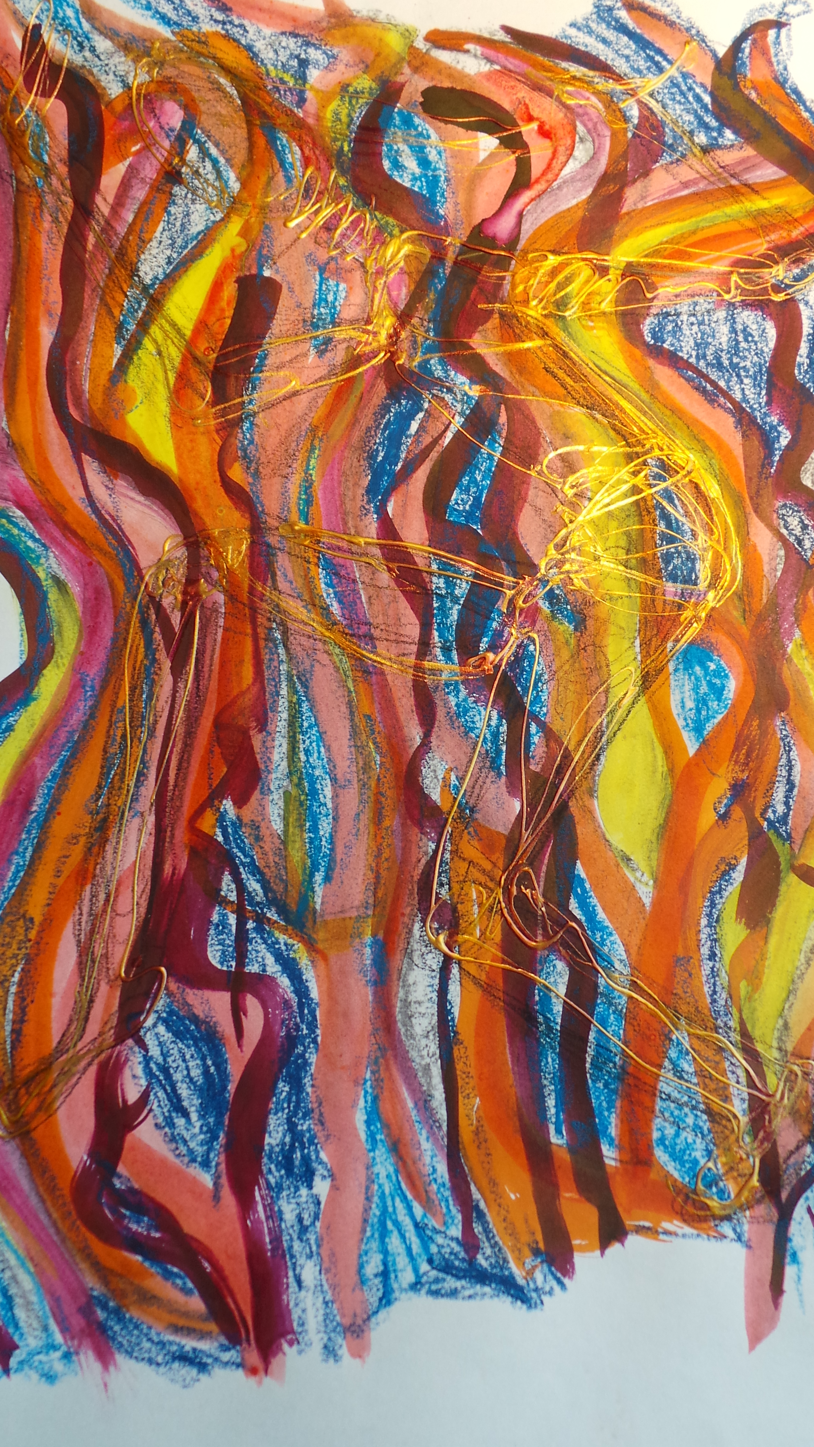 Meanwhile; I have a good network of supporters here in UK who have wiped the tears of this wailing woman in particular my art teacher who is blissfully unaware of the recent mishap. She was however supportive on the evening of my daughters recent return. It was the first clear dry night for several days so she built a fire in the garden. So with paper and pencils and a cup of tea nearby she allowed me to paint my emotions in the light and the warmth of the fire. I was was a beautiful experience and one I hold in a time when everything seemed so ghastly and would unbeknown to be get considerable worse.