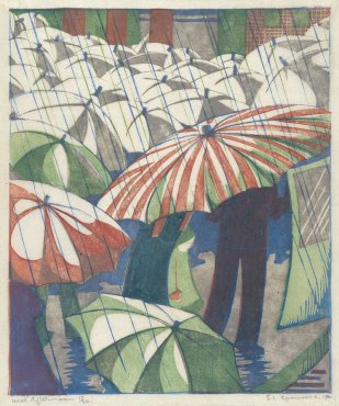 Very interesting post. I didn’t know this artist’s printmaking. I love the ubrellas.