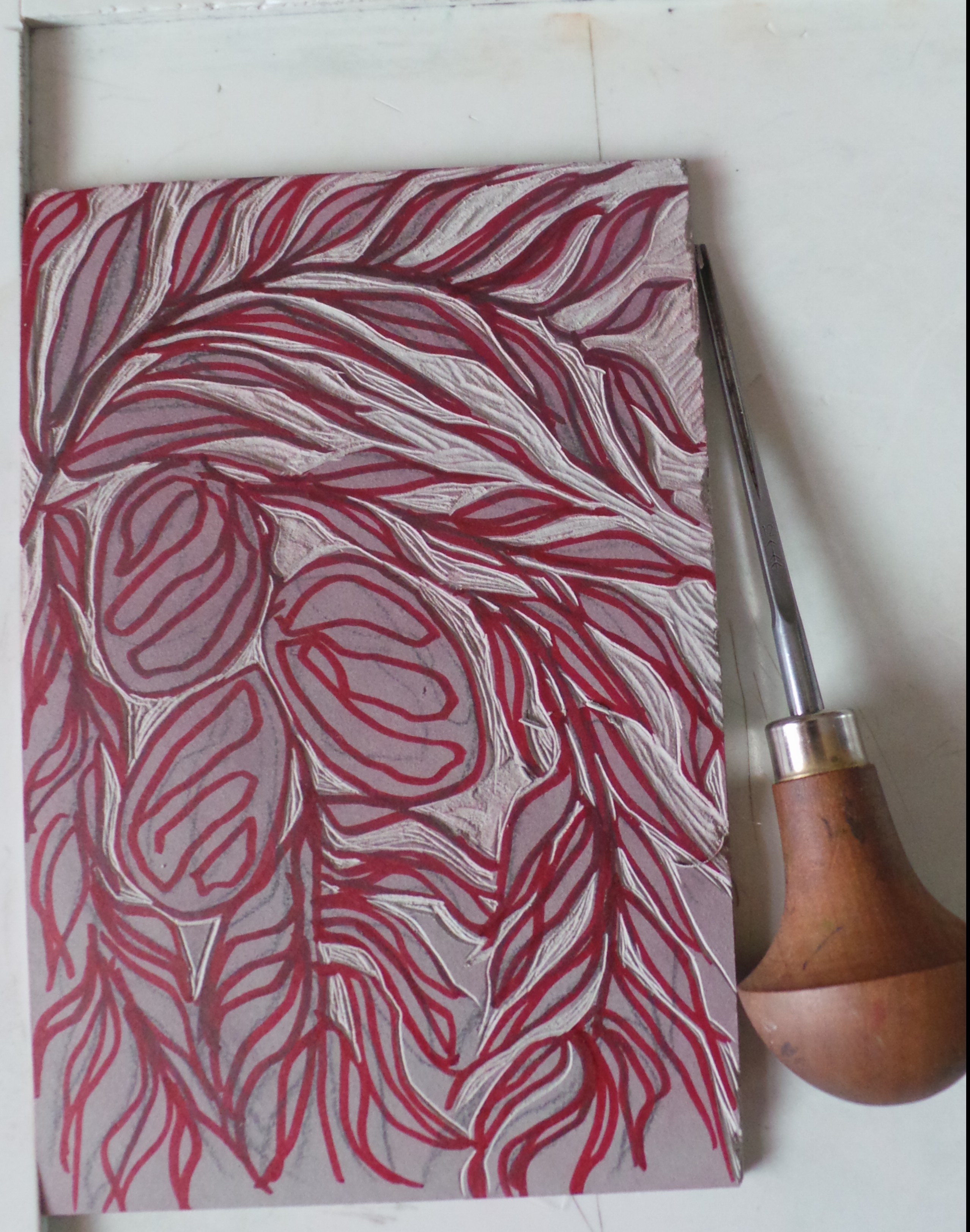 Each day I would attempt to draw the leaves and now I try to do a lino-cut but somehow it doesn’t ‘cut the mustard.’