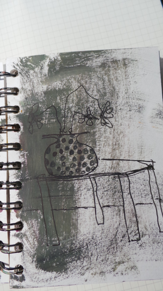 This seemed like a good idea this morning now the paint is dry I can create; with a pot of tea and then more tea I still not got further than my same old images … pots of flowers and dead as well.