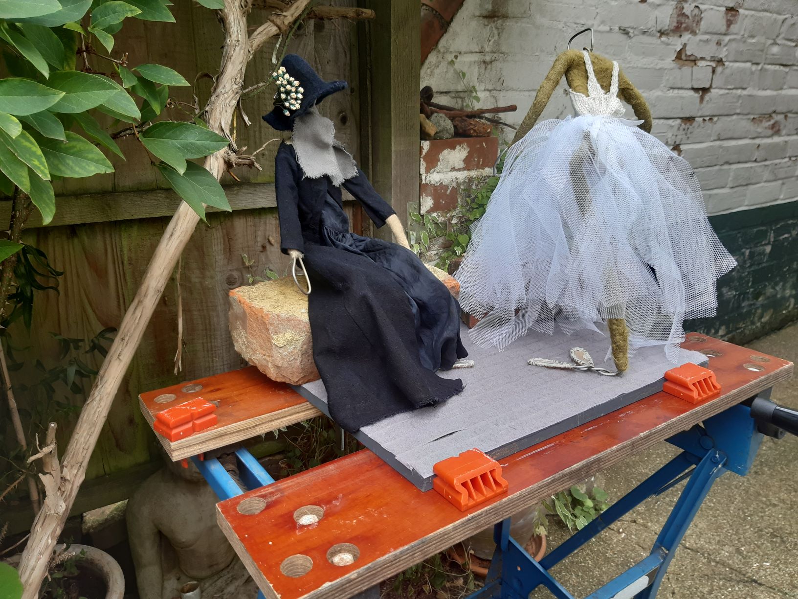 I am no sure where my Coat Hanger Dolls stand in the world of puppets and puppetry. I am a beginner in an indutstry that has its roots in the second and first millennia when early peoples crafted beings and gave them ‘life’. So, the craft developed and became increasingly sophisticated and now has an organised support structure. Since the early 20th century there has been an International Puppet Union holding international traditional and experimental festivals and producing puppet related books and journals. Furthermore, puppetry was introduced to Further Education in colleges and universities for those wishing to perform on television, theatres, and festivals professionally.